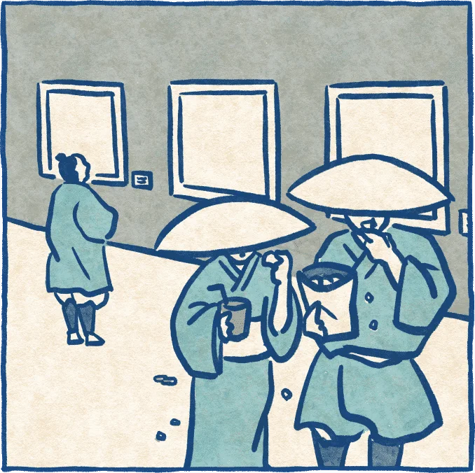 展示スペースに食べ物や飲み物を持ち込まないようにしましょう。
