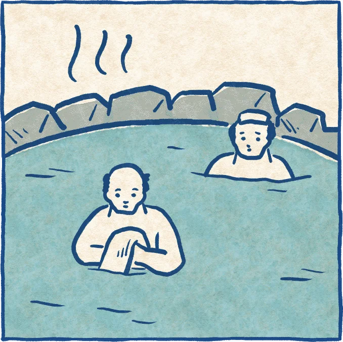 温泉の湯船にタオルを入れるのはマナー違反です。縁に置いておくか、頭の上に載せるなどしましょう。