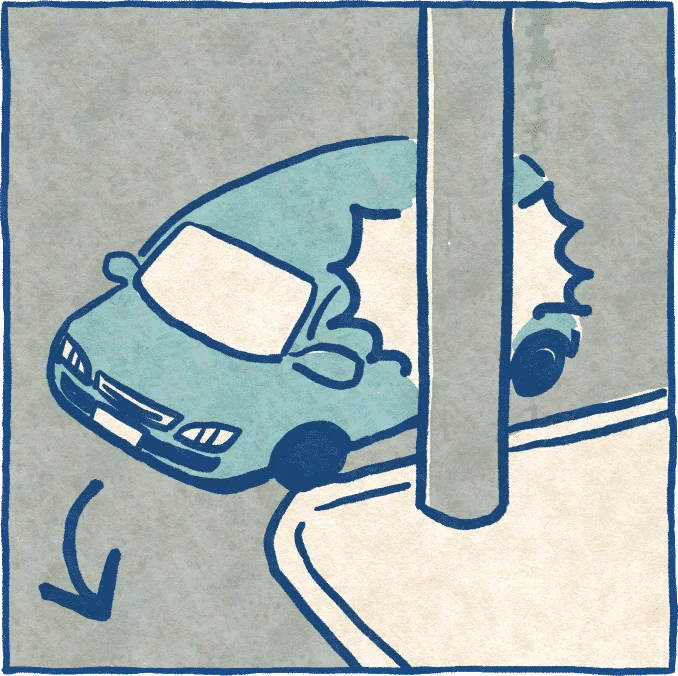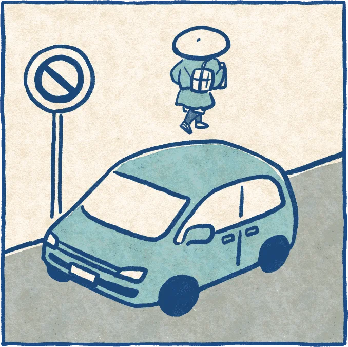 道路での駐車は禁止です。駐車場を利用しましょう。