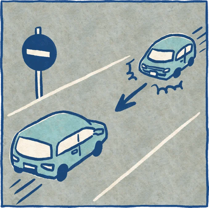 一方通行の道路が稀にあります。逆走しないように気をつけましょう。