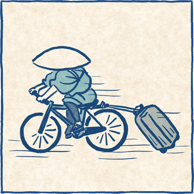自転車に乗りながら、スーツケースを牽引するのはやめましょう。