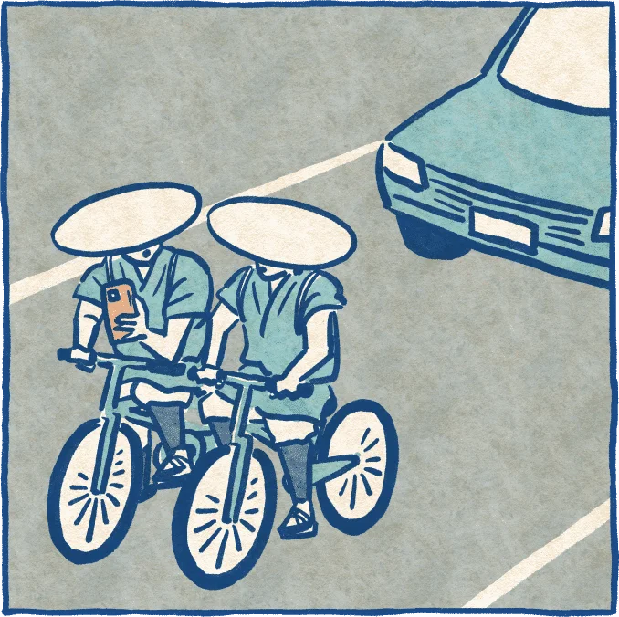 並走など道路に広がっての運転や、スマートフォンを操作しての運転は止めましょう。