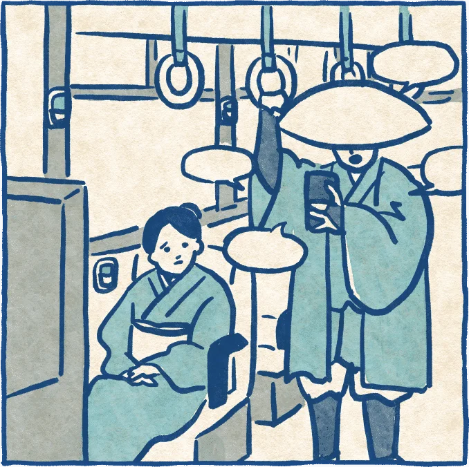 公共バス・電車内で、大声で話したり、電話のスピーカーをオンにしての会話はやめましょう。